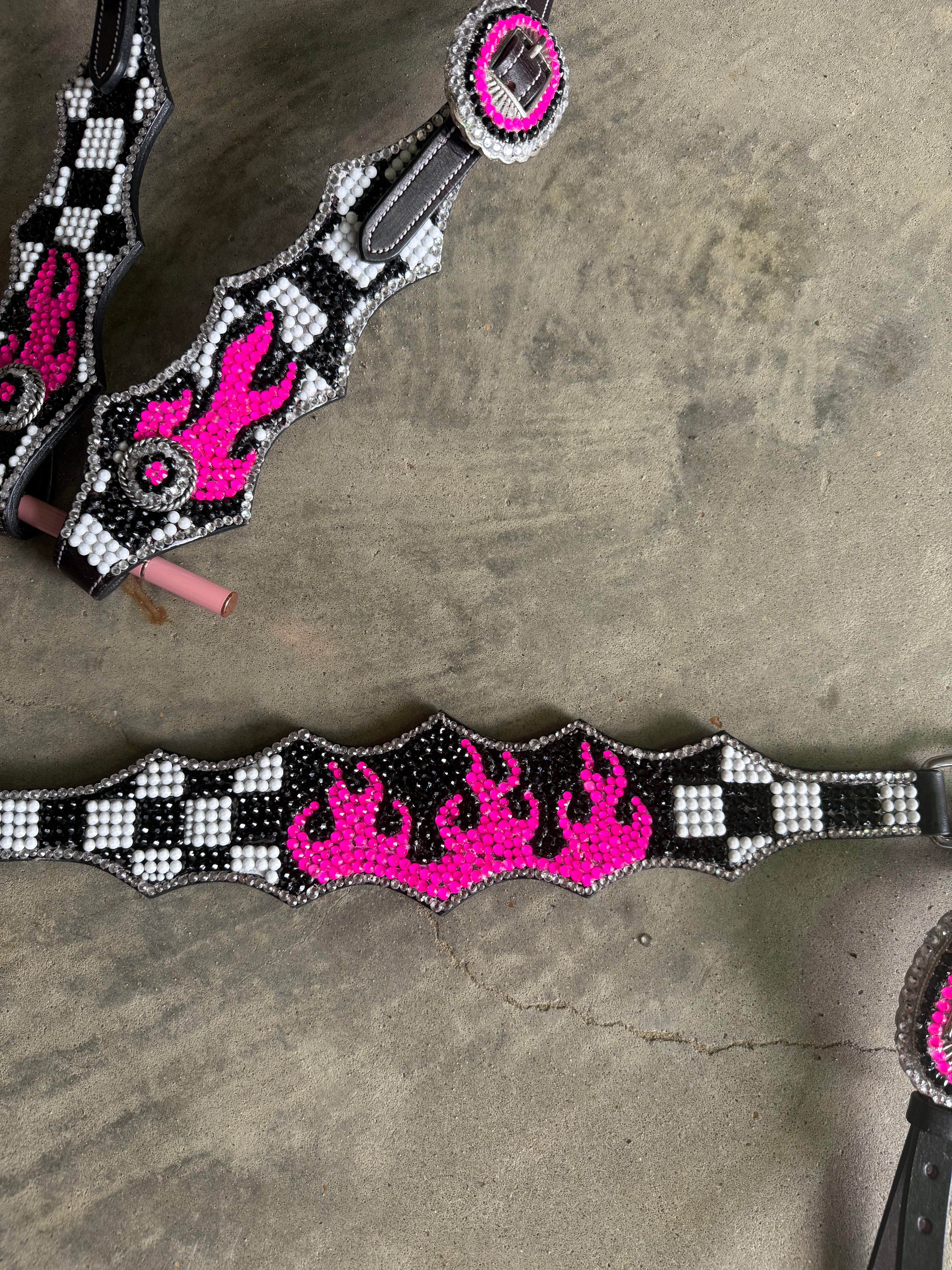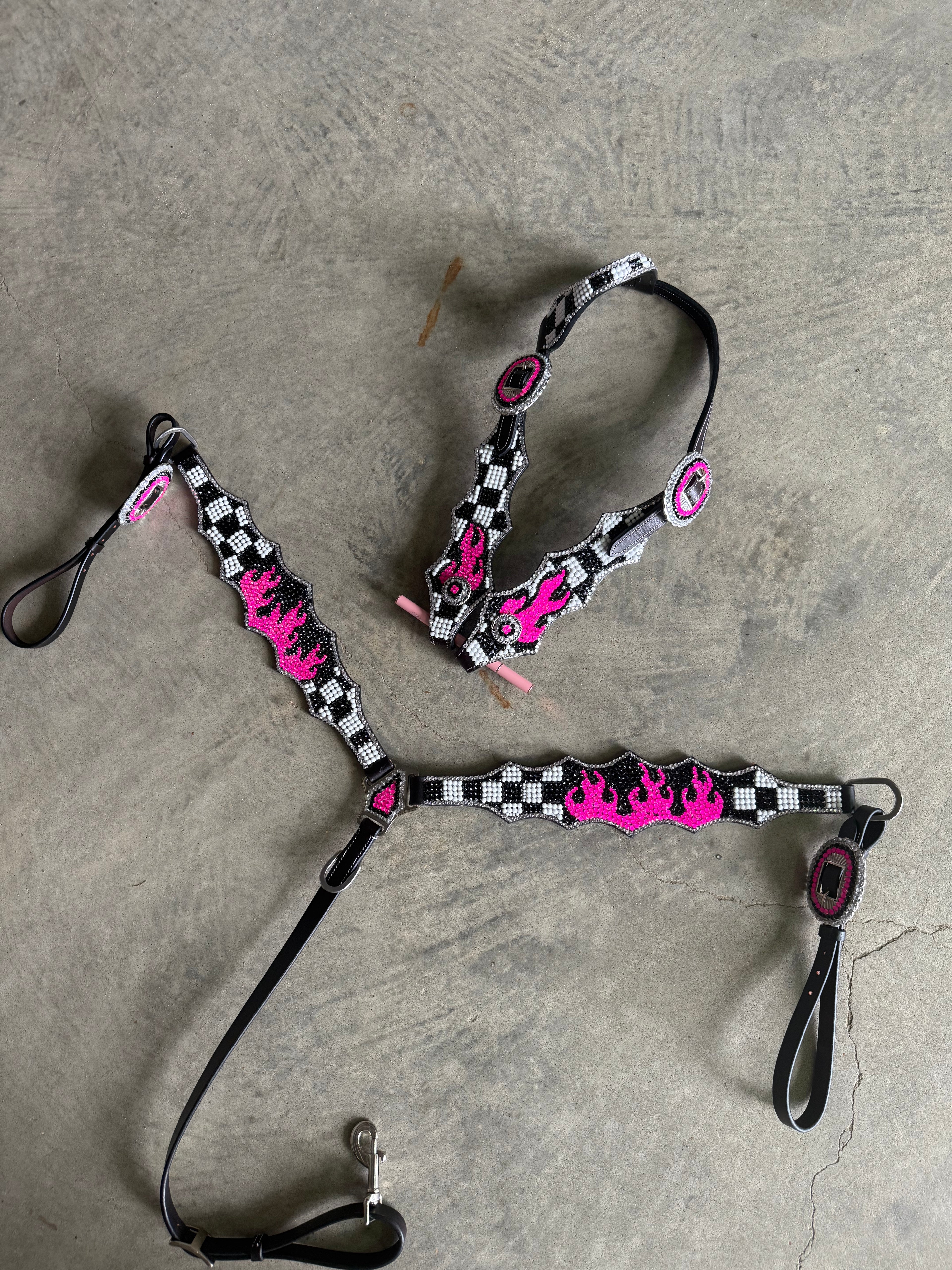 **PRE ORDER**Pink W/ White Checkered Designer Tack Set