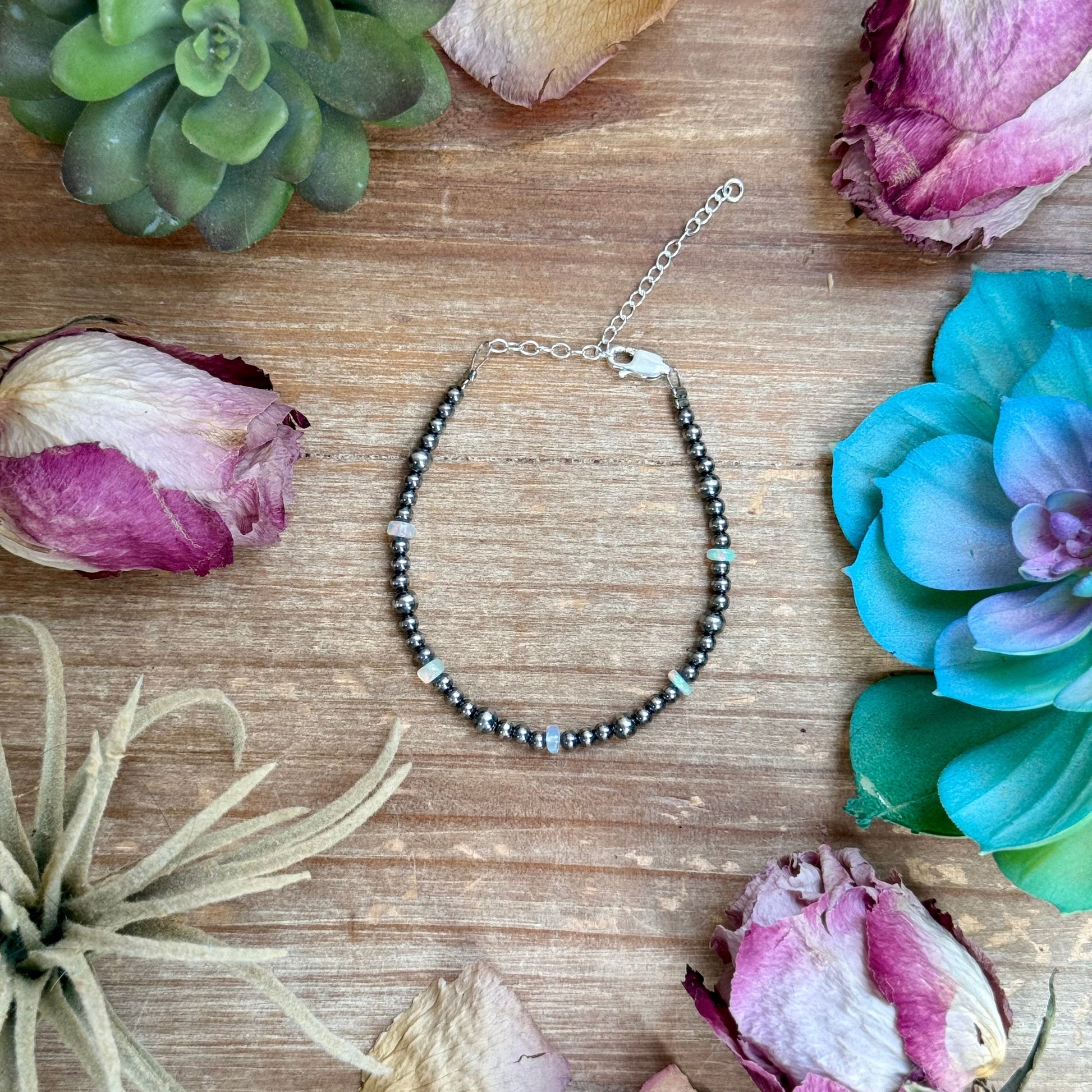 6.25” White Ethiopian Opal Bracelet – 3–4mm Sterling Silver Pearls