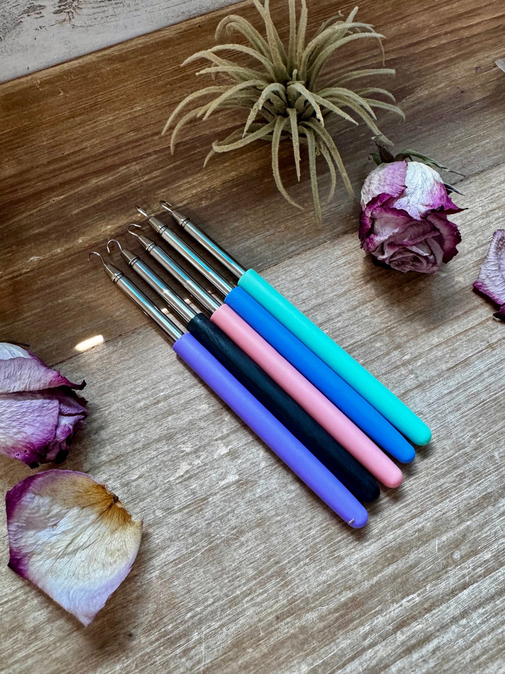 This bracelet helper tool makes it simple to put on any bracelet by yourself — no extra hands needed! Designed with a small hook system, it securely holds one side of your bracelet while you fasten the clasp with ease. Perfect for all of our bracelets (which come with clasps), this tool saves time and makes daily wear effortless. Available in 5 fun colors, so you can pick your favorite.